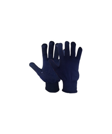 Ypač tankaus mezgimo, kokybiškos medvilninės / poliesterio darbo pirštinės FALO. Su PVC taškeliais ant delno.