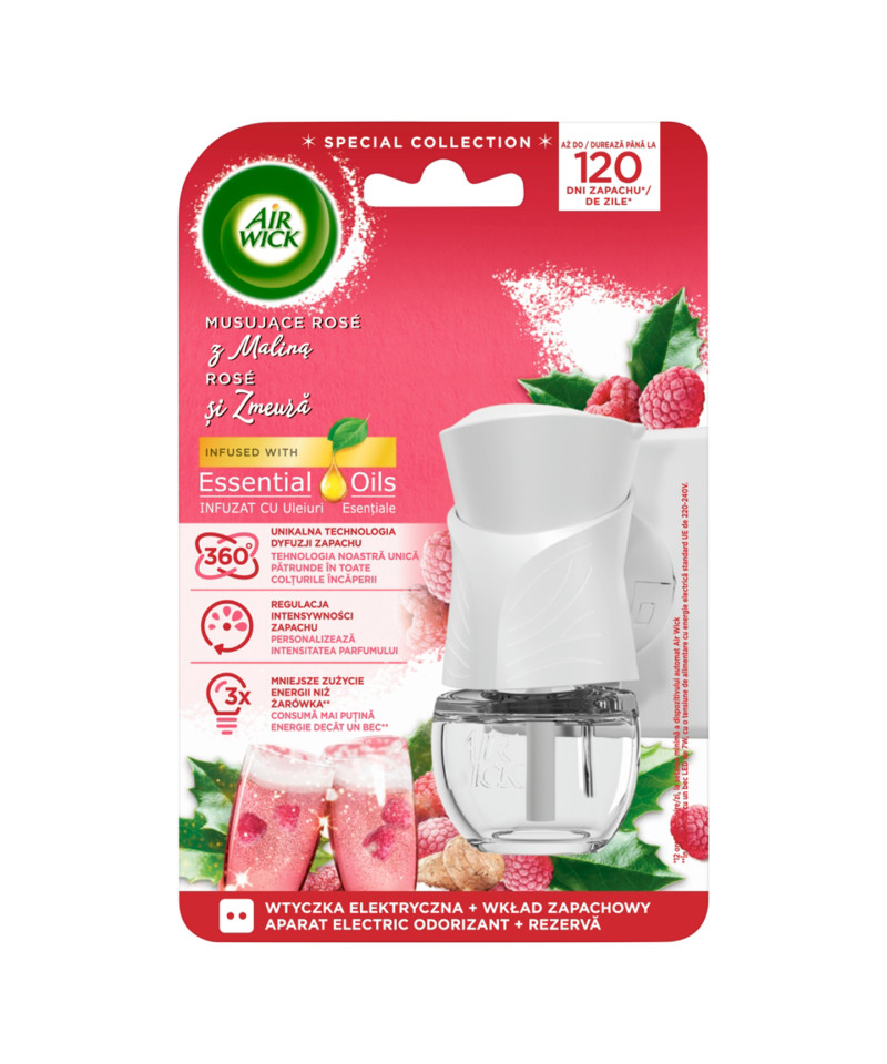 NAUDOJIMAS: nuimkite plastikinį buteliuko dangtelį, tuomet laikydami vertikalioje padėtyje įstatykite jį prietaiso apačioje ir spauskite, kol išgirsite spragtelėjimą. Įstatykite kištuką į elektros lizdą ir nustatykite norimą kvapo intensyvumą.