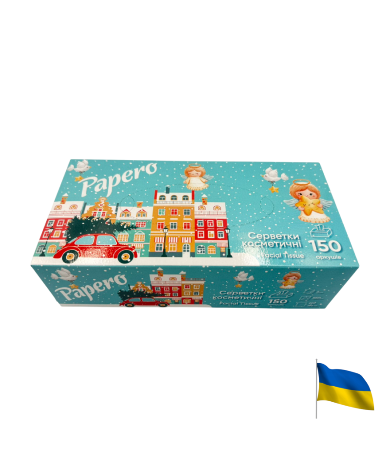 Kosmetinės servetėlės Papero 2sl., 150 lap. (šventiškas dizainas)