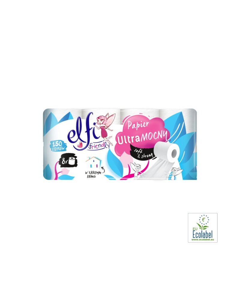 Baltas 3 sluoksnių „Serla“ tualetinis popierius. 3 sluoksnių tualetinis popierius; ritinyje yra 150 lapelių; pagamintas iš plaušienos ir perdirbtos celiuliozės, pakuotėje 16 rit.