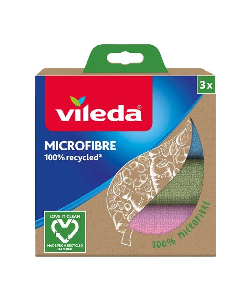 Vileda šluostės, pagamintos iš perdirbto pluošto, puikiai tinka visų paviršių valymui. Mikrofibrinė šluostė be sunkumų pašalina purvą ir visus nešvarumus. Šią šluostę galima naudoti su vandens pagalba be jokių specialių valiklių. Vileda perdirbtos mikrofibrinės šluostės pagamintos iš plastiko, todėl yra ekologiškai tvarus sprendimas valyti jūsų namams.
