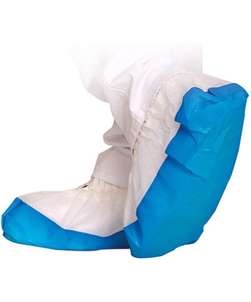Vienkartiniai antbačiai CPE+PP, mėlyna-balta, dydis 17x41cm, 50 vnt, 9.3g.